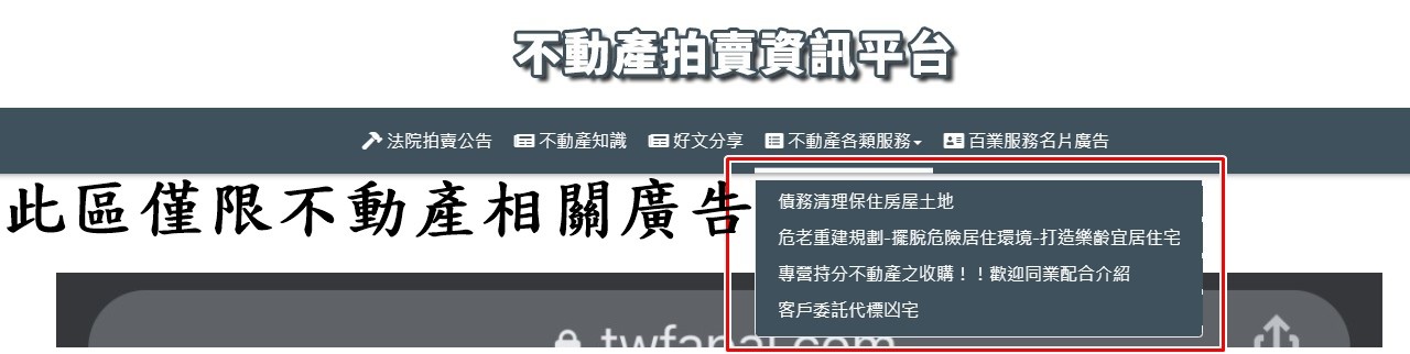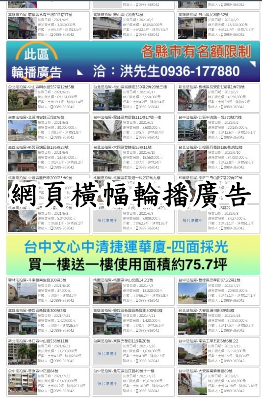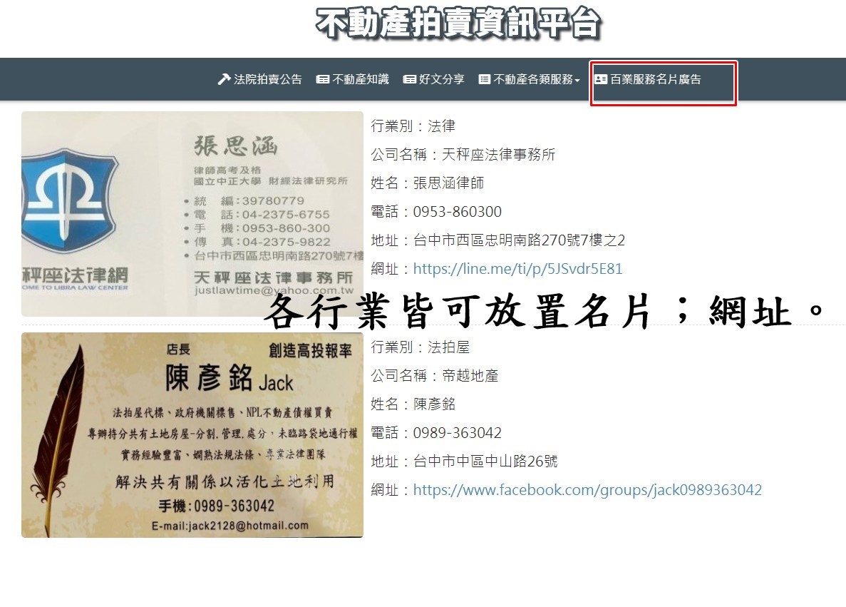 一.各縣市法拍物件聯絡服務人員廣告送一篇不動產各類服務廣告。(一個縣市每月2000元)