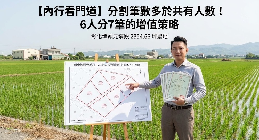 【內行看門道】分割筆數多於共有人數!彰化埤頭元埔段 2354.66 坪農地,6 人分 7 筆的增值策略